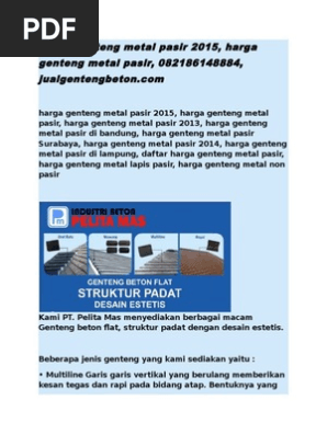 Dipublikasi pada 3 maret 2015 oleh gentengmetal1. Genteng beton terbaik, genteng beton vs genteng metal, genteng bitumen, genteng cisangkan, genteng cisangkan bandung, genteng cisangkan bekasi, genteng cisangkan bekasi selatan,. Pos tentang daftar harga genteng beton monier 2015 yang ditulis oleh sukses mandiri teknik. Produk harga genteng metal frisco : Harga nok c rp 25.000.